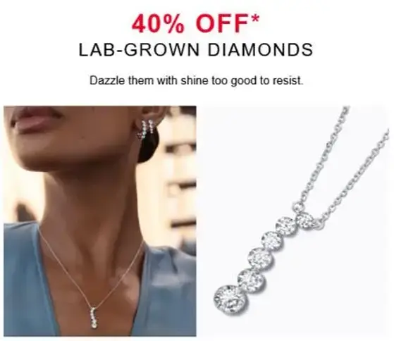 Save big while you can! Shop in store and get 40% off lab-grown diamonds.